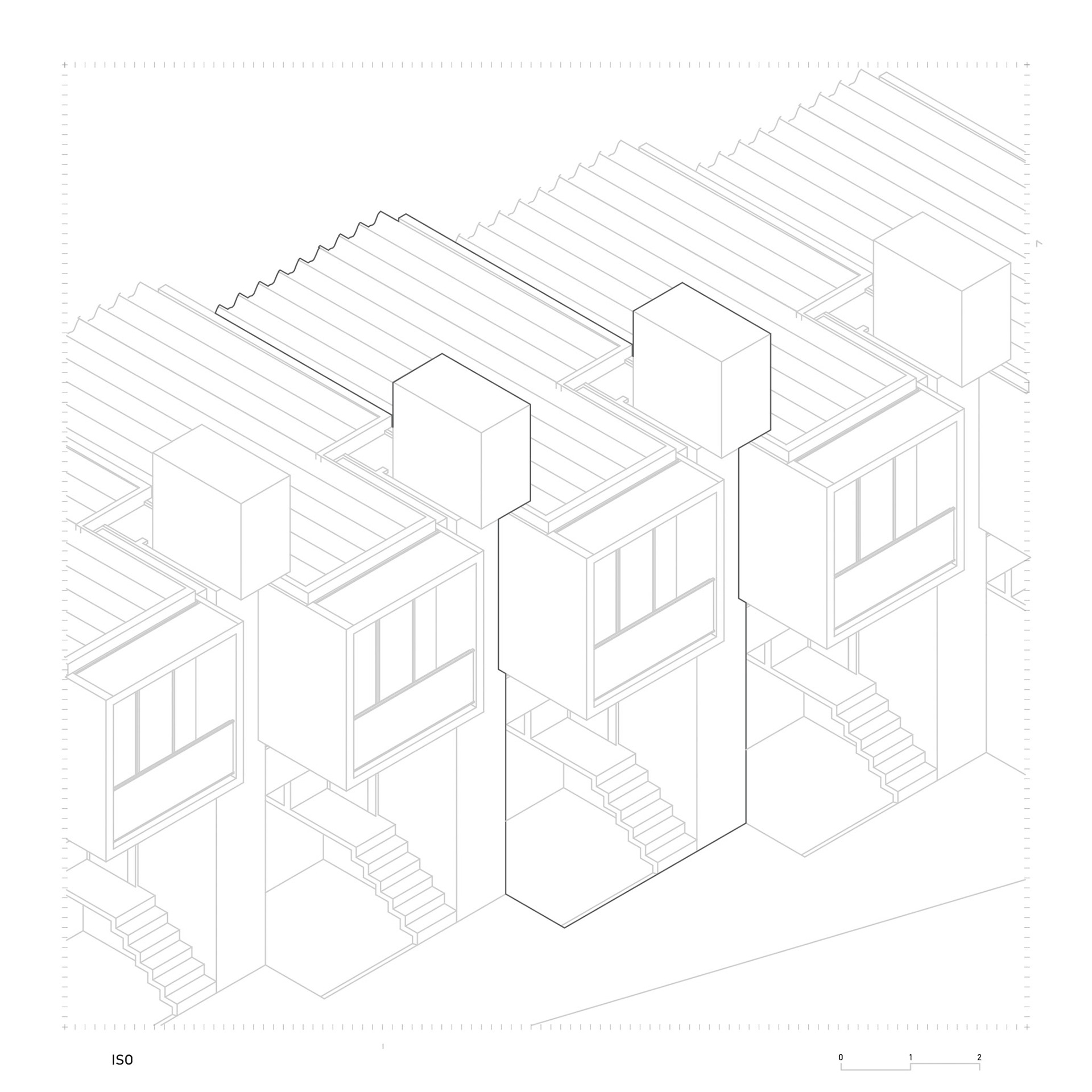 Com o dever de mostrar ao mercado o quanto a arquitetura pode contribuir para a produção de boas soluções habitacionais para uma faixa de renda menos favorecida, este projeto parte do ideal de que uma habitação social pode unir qualidade estética e funcional, sem custos elevados. Deste modo, utilizando a limpeza formal e a racionalidade, foi possível desenvolver um conjunto de 17 casas de baixo custo.