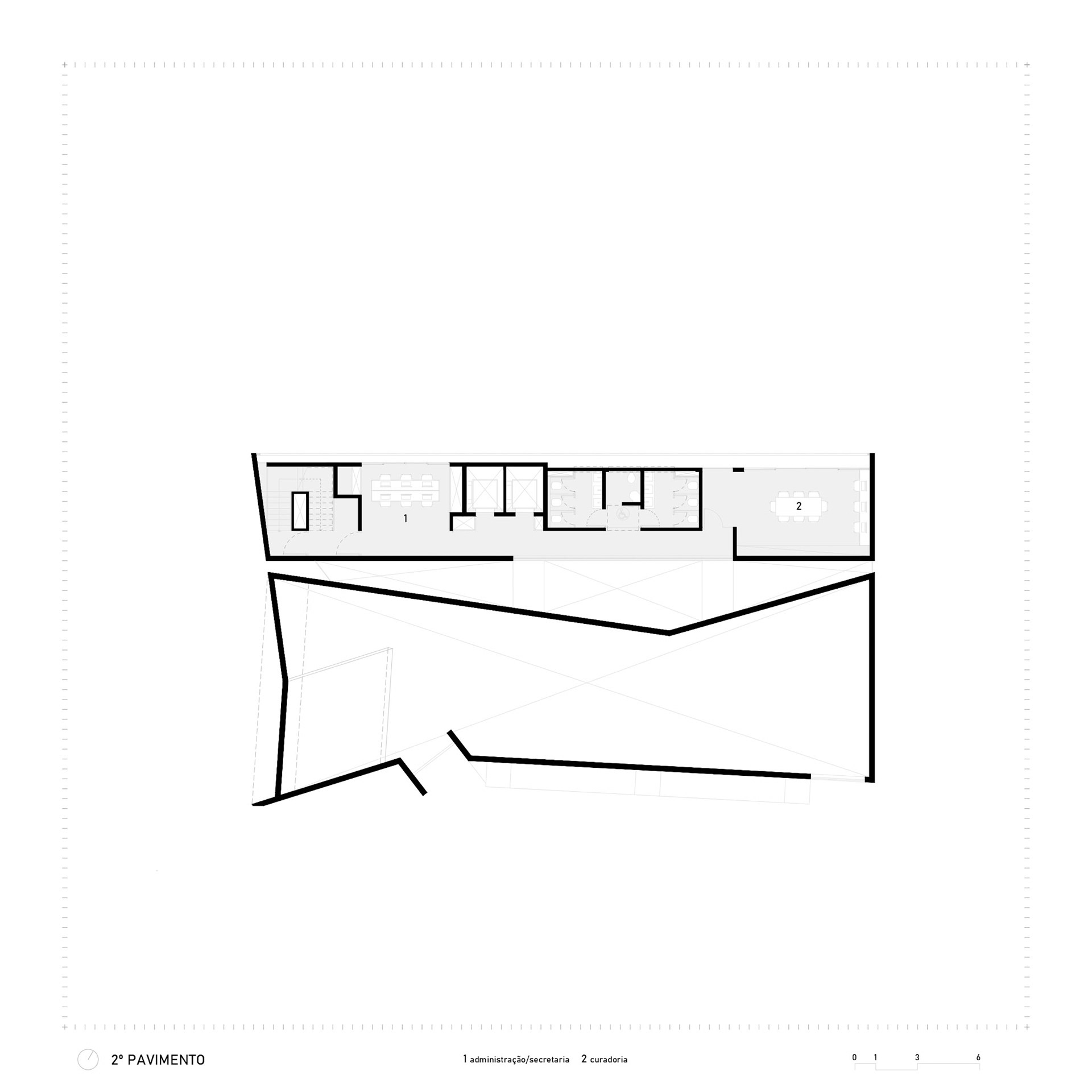A rampa que se projeta para fora é um gesto político: uma pausa suspensa sobre a calçada, um momento de contemplação do histórico Liceu de Artes e Ofícios. A praça pública articula o edifício com a cidade, permitindo que a arte extravase os limites das paredes. O concreto armado aqui demonstra sua vocação plástica e social: maleável para criar a forma arrojada, rígido para garantir a permanência da cultura no espaço urbano.