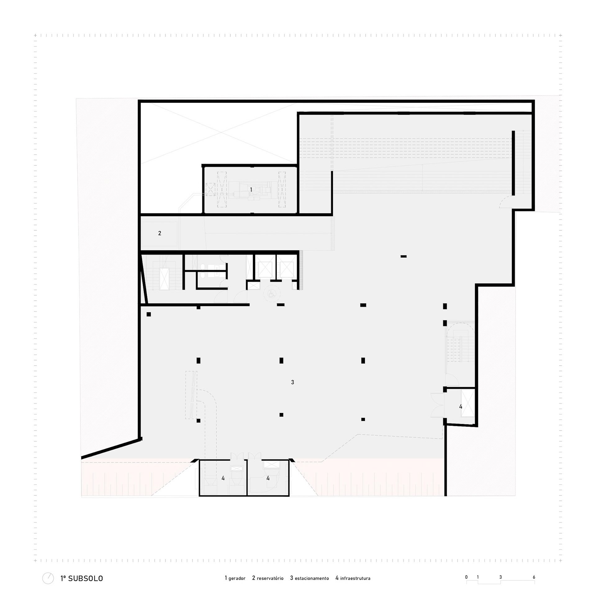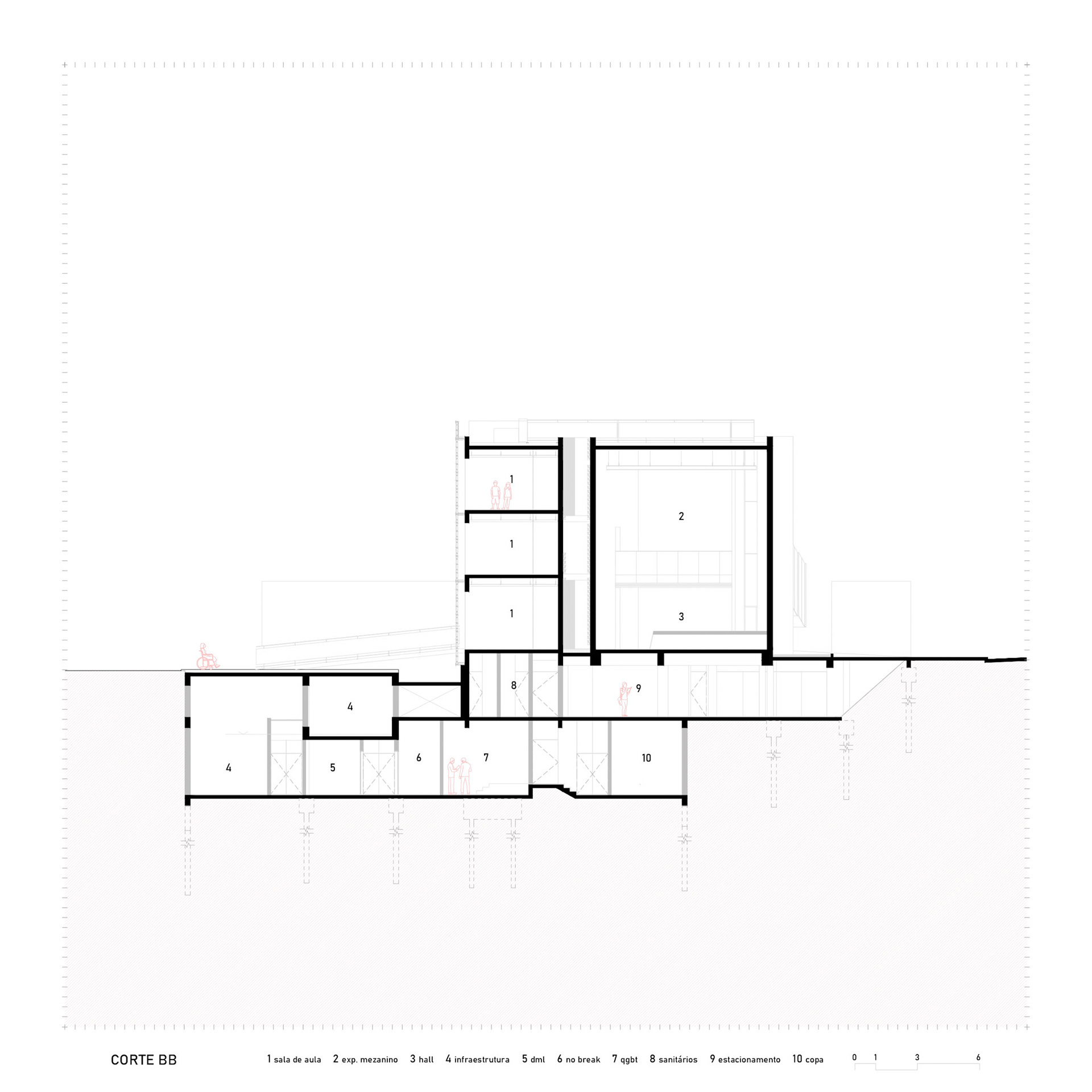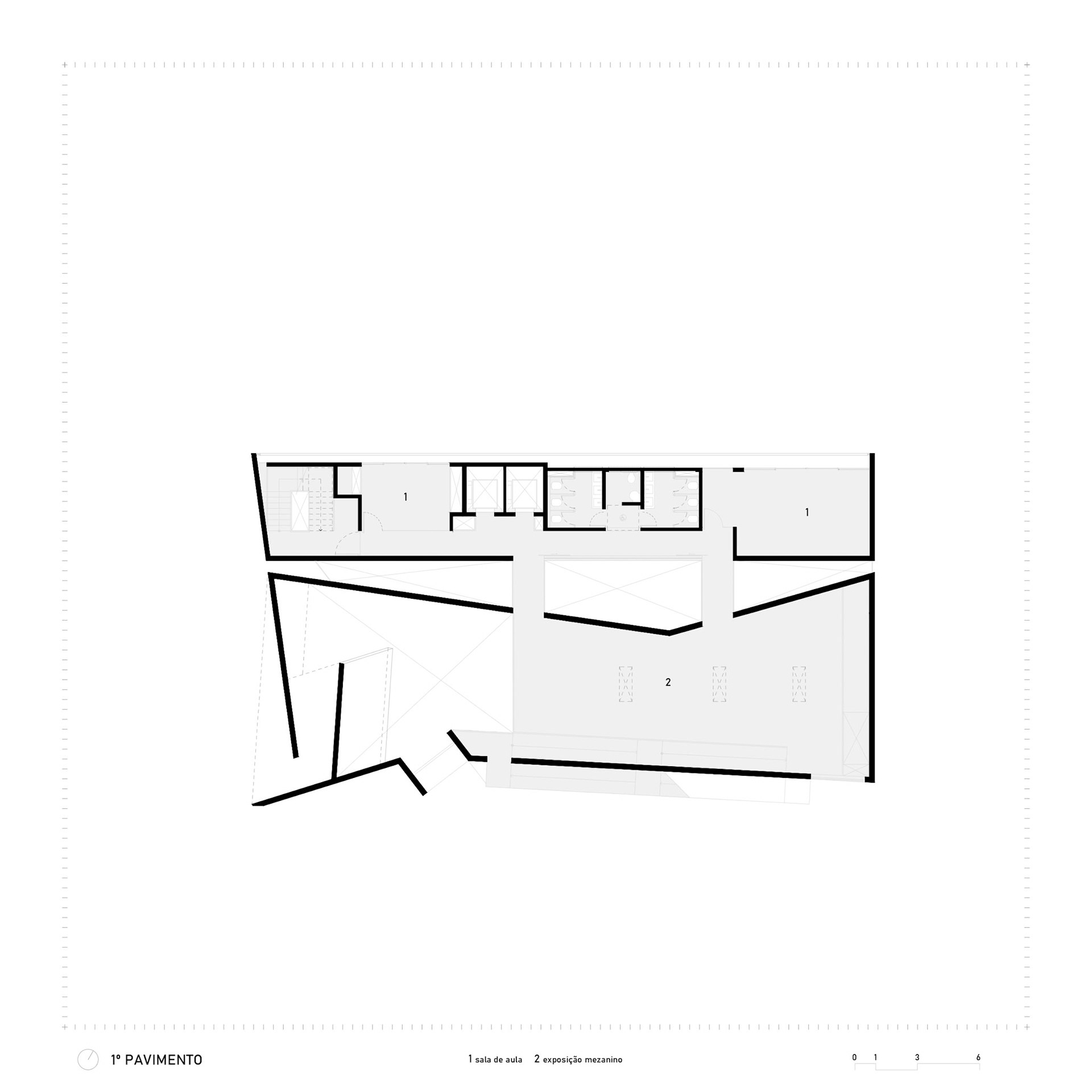 The ramp projecting outwards is a political gesture: a pause suspended over the sidewalk, a moment of contemplation of the historic Liceu de Artes e Ofícios. The public square articulates the building with the city, allowing art to spill over the limits of the walls. Reinforced concrete here demonstrates its plastic and social vocation: malleable to create the bold form, rigid to guarantee the permanence of culture in the urban space.