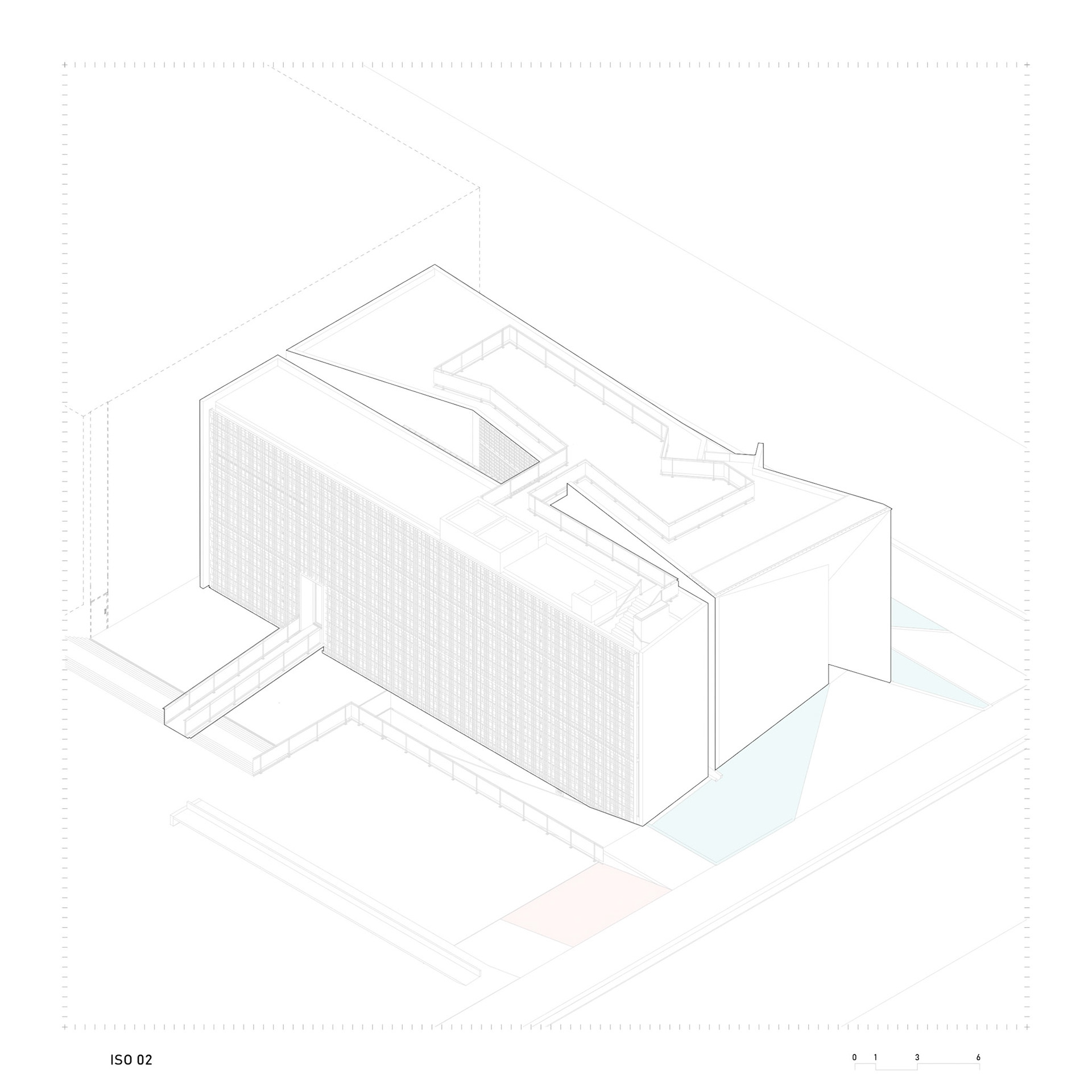 O edifício não nega o entorno difícil; ele se oferece como catalisador de mudança. As dobras da fachada de concreto não são capricho formal; elas resolvem a acústica, quebram o paralelismo, orientam o percurso e filtram a luz. Onde a função exige — administração, aulas — criamos uma segunda pele de elementos vazados, madeira e concreto, protegendo o vidro.