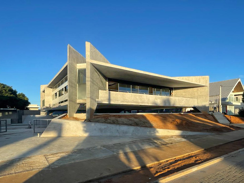 As proteções estruturais em concreto armado asseguram a viabilidade dessa façanha técnica, reafirmando a potência do material como elemento expressivo e estrutural.