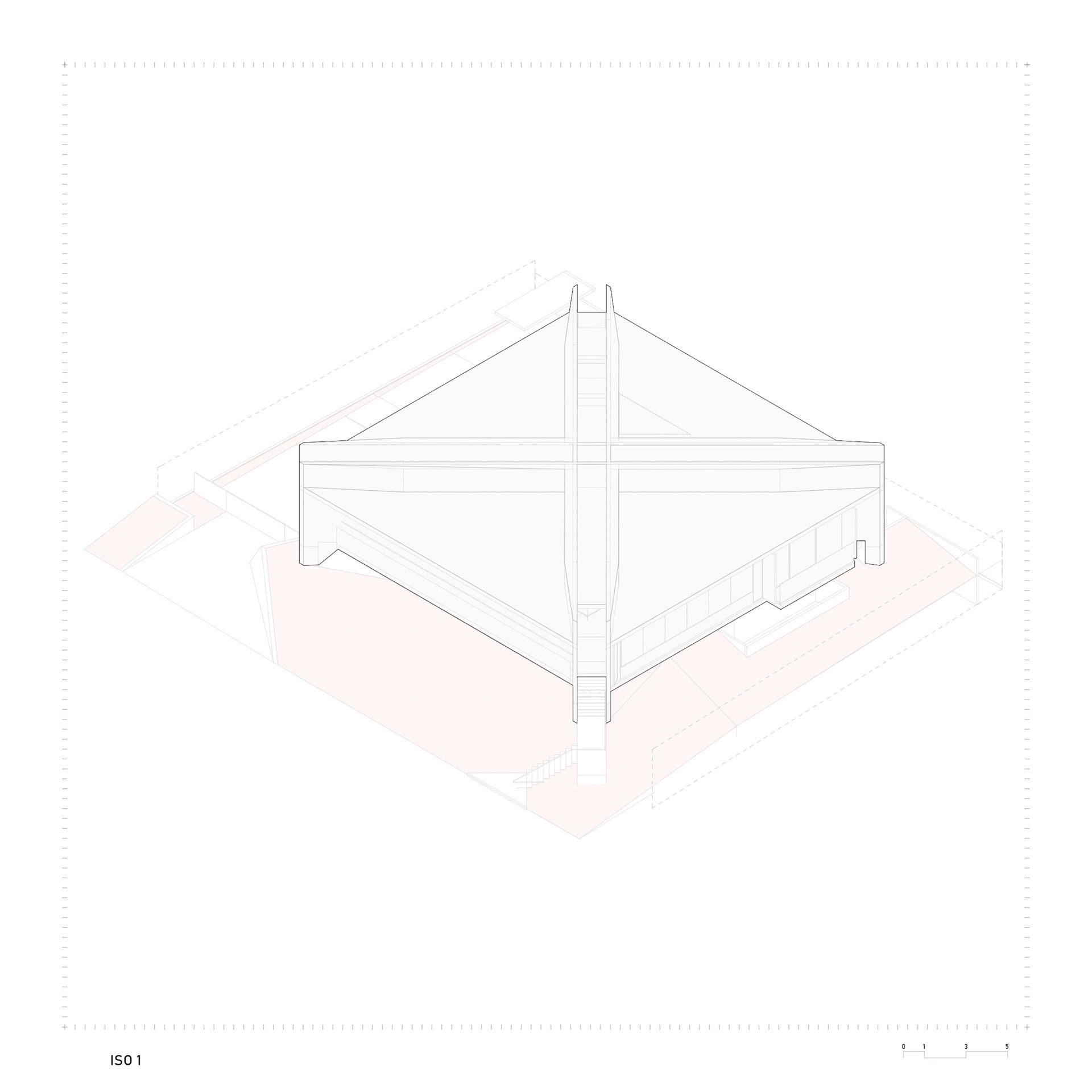 O resultado é um monólito delgado que parece pairar sobre o terreno, apoiando-se com a delicadeza de quem pousa — como o pé de uma bailarina em equilíbrio.