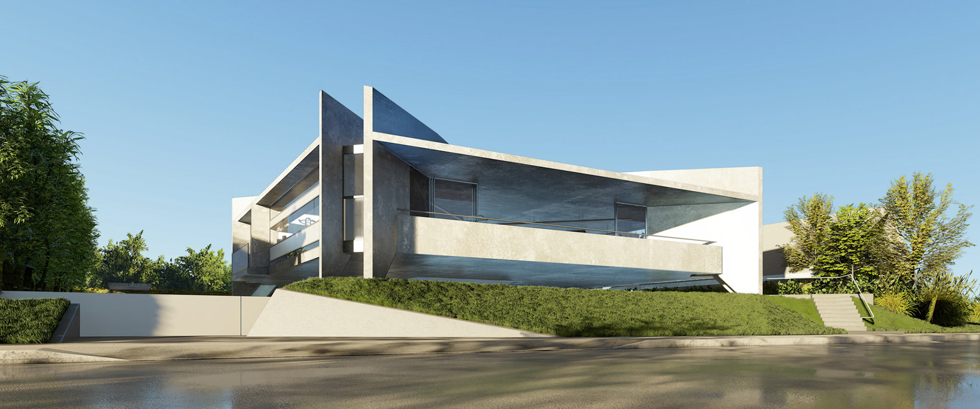 At the HaveBlue house, a structural challenge emerged, which transformed into the design premise. In this residence, the client's desire for a free, ground floor with few supports led to the creation of a house whose structure becomes the architectural gesture itself — a suspended volume that simultaneously reveals and sustains its lightness.