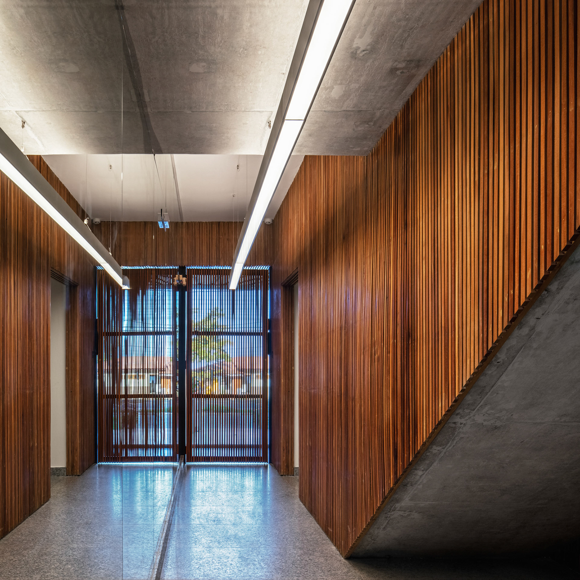 Vinte e sete residências compõem o edifício com rigor de proporção e generosidade de espaço. As coberturas se abrem ao céu, suspendem os limites visuais, convidam a paisagem a entrar. O térreo, permeável, ativo, alia-se à cidade em diálogo paciente; aos transeuntes, aos vizinhos, à vida urbana. Ele não se fecha — oferece-se, doa-se, integra-se.