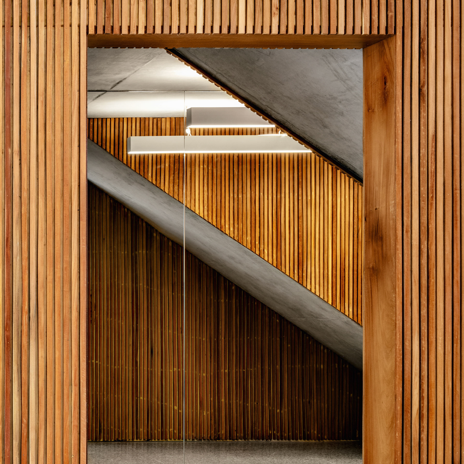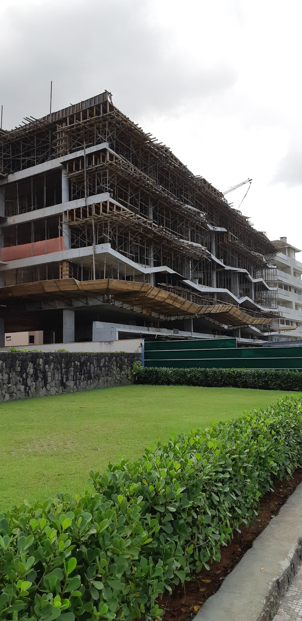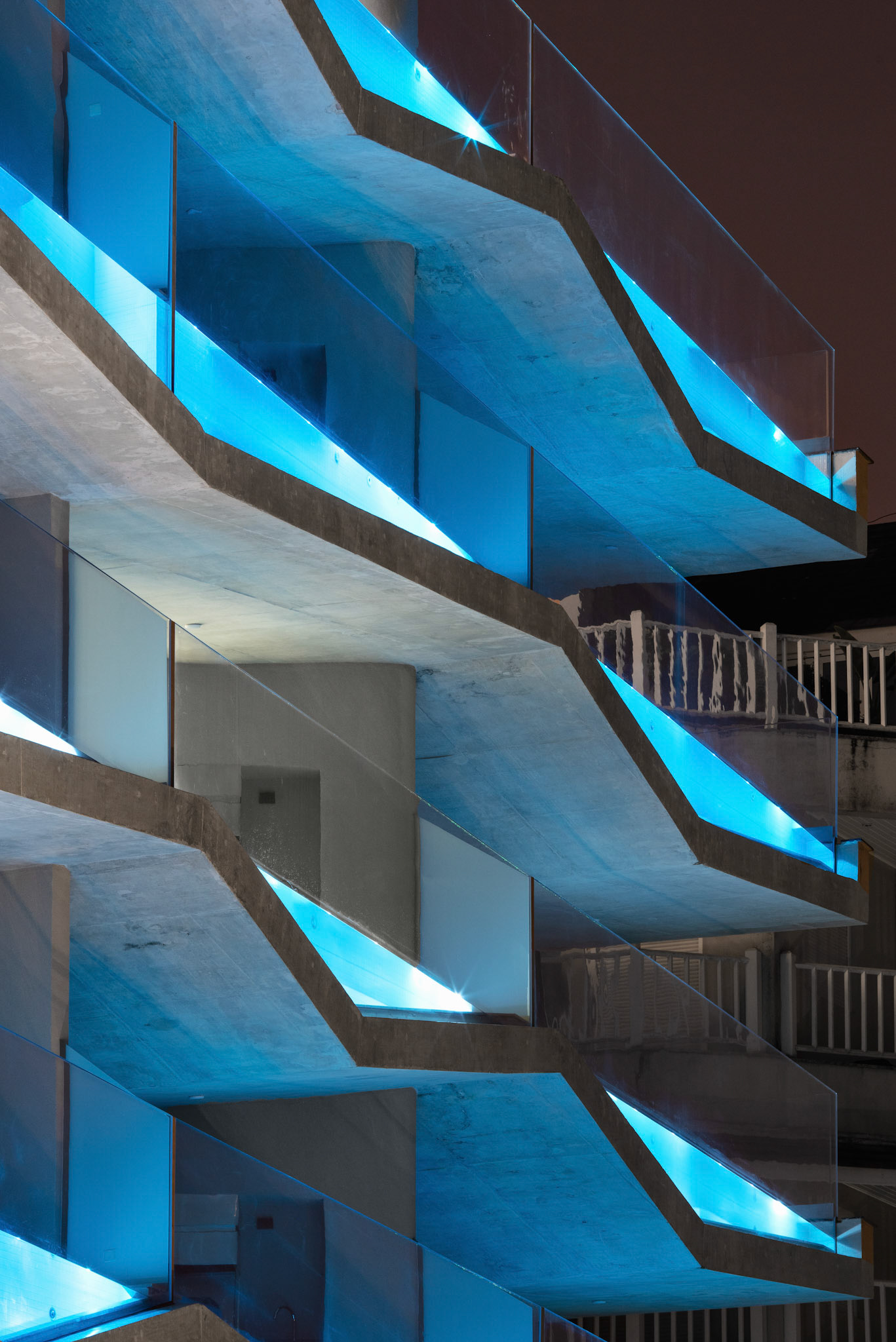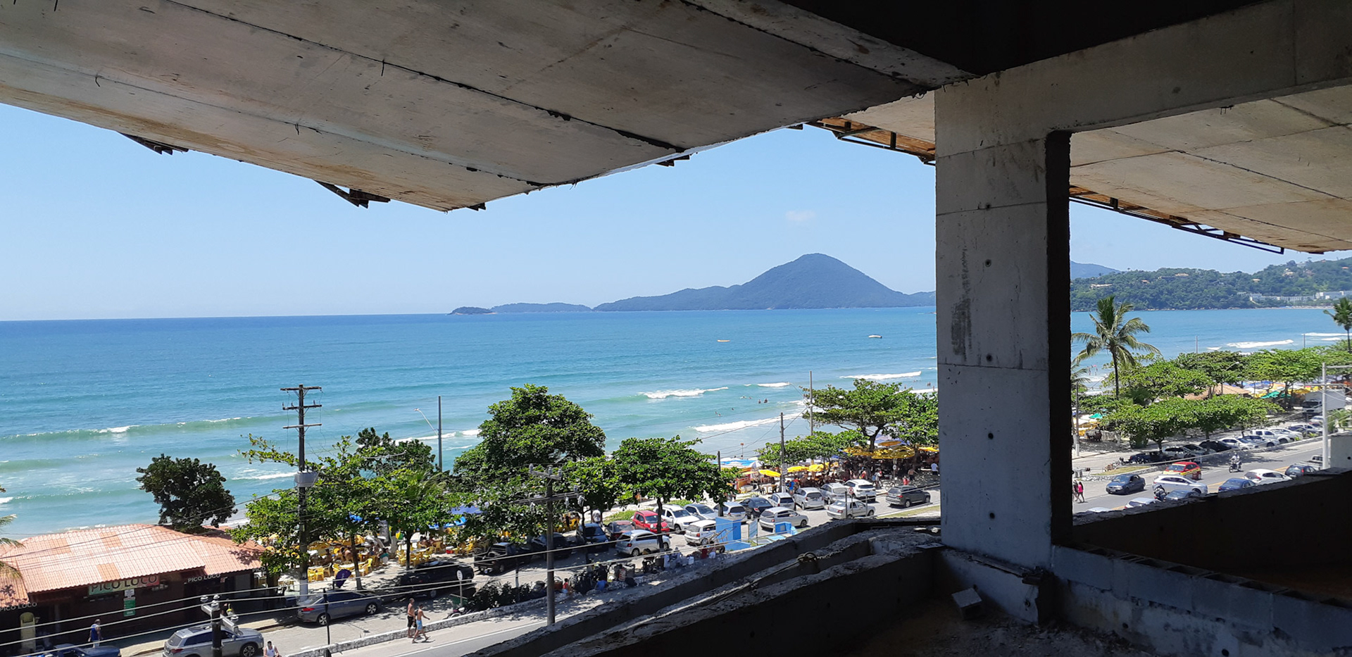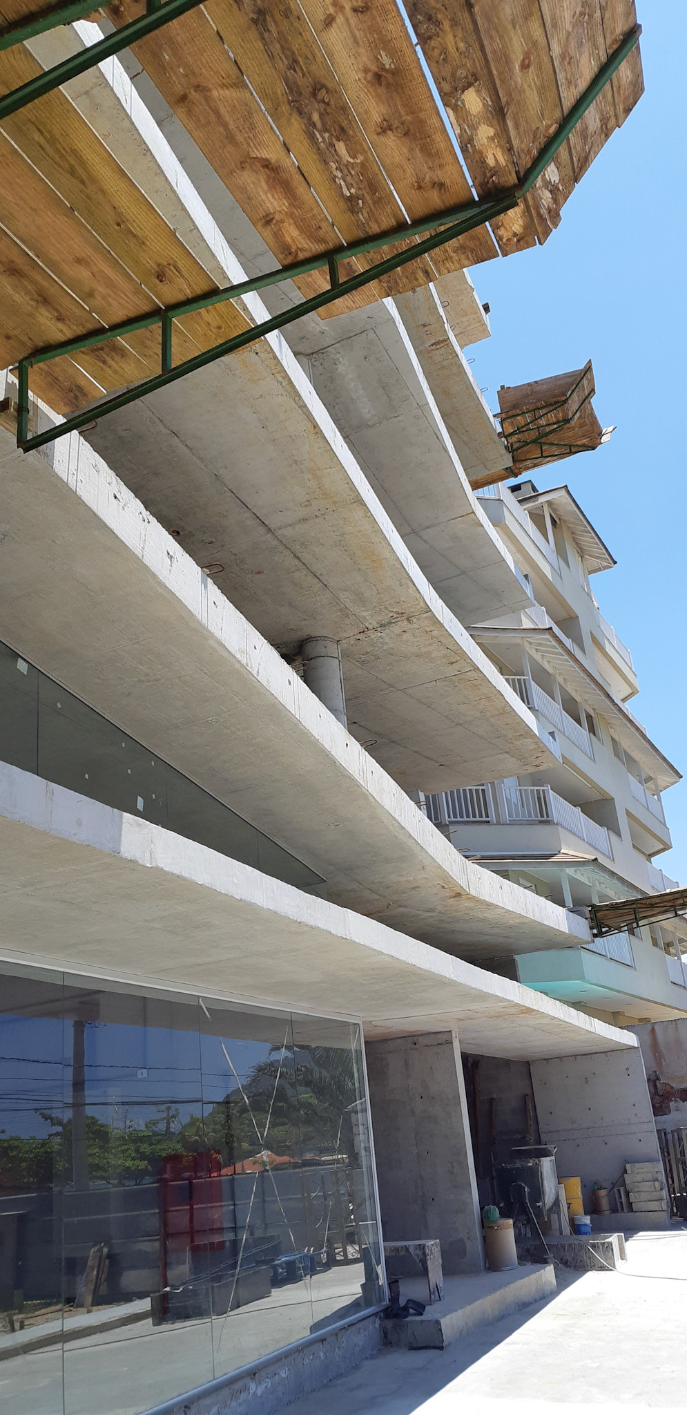 Inspirado pelas sinuosas montanhas de Ubatuba, este edifício nasce do encontro entre lugar e gesto — uma construção que interroga o relevo, o horizonte, a luz. Nas varandas, as piscinas em zigue-zague não se impõem: elas se dobram ao contorno, reinterpretam o movimento da paisagem. O lazer aqui não é ornamento — é gesto; não é espelho d’água apenas — é retirada de horizonte, fragmento do relevo convertido em arquitetura.